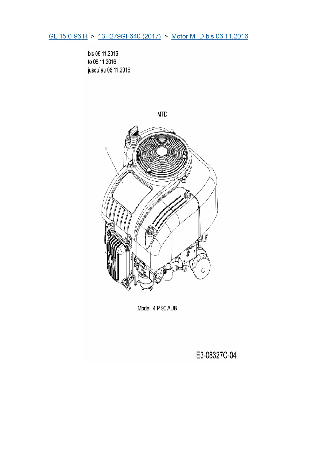 Ersatzteile für Rasentraktor Gartenland GL 15,0-96 H aus der Zeichnung Motor MTD bis 06.11.2016: