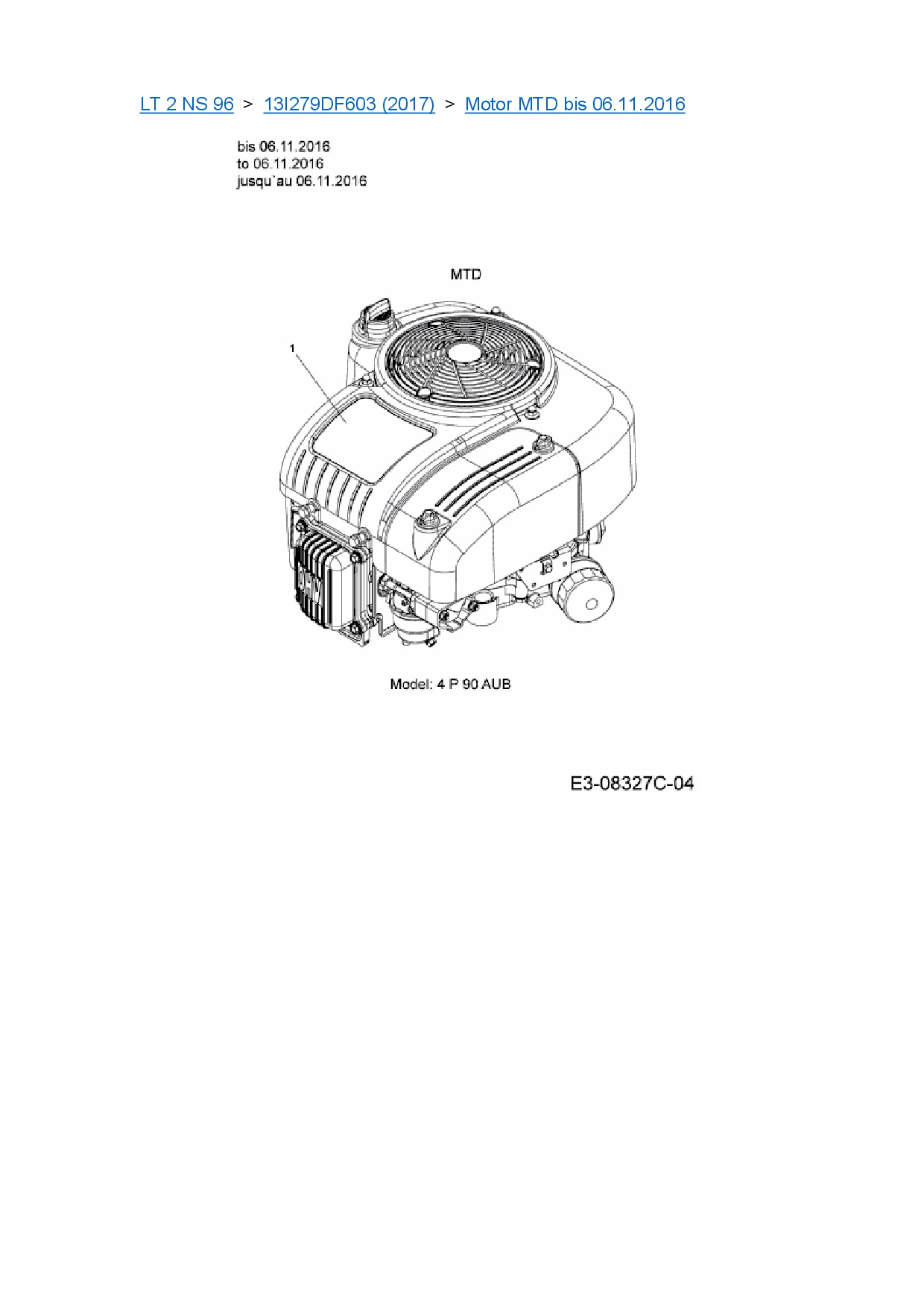 Ersatzteile für Rasentraktor Cub Cadet LT 2 NS 96 aus der Zeichnung Motor MTD bis 06.11.2016:
