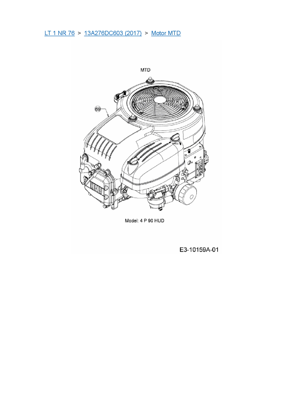 Ersatzteile für Rasentraktor Cub Cadet LT 1 NR 76 aus der Zeichnung Motor MTD:
