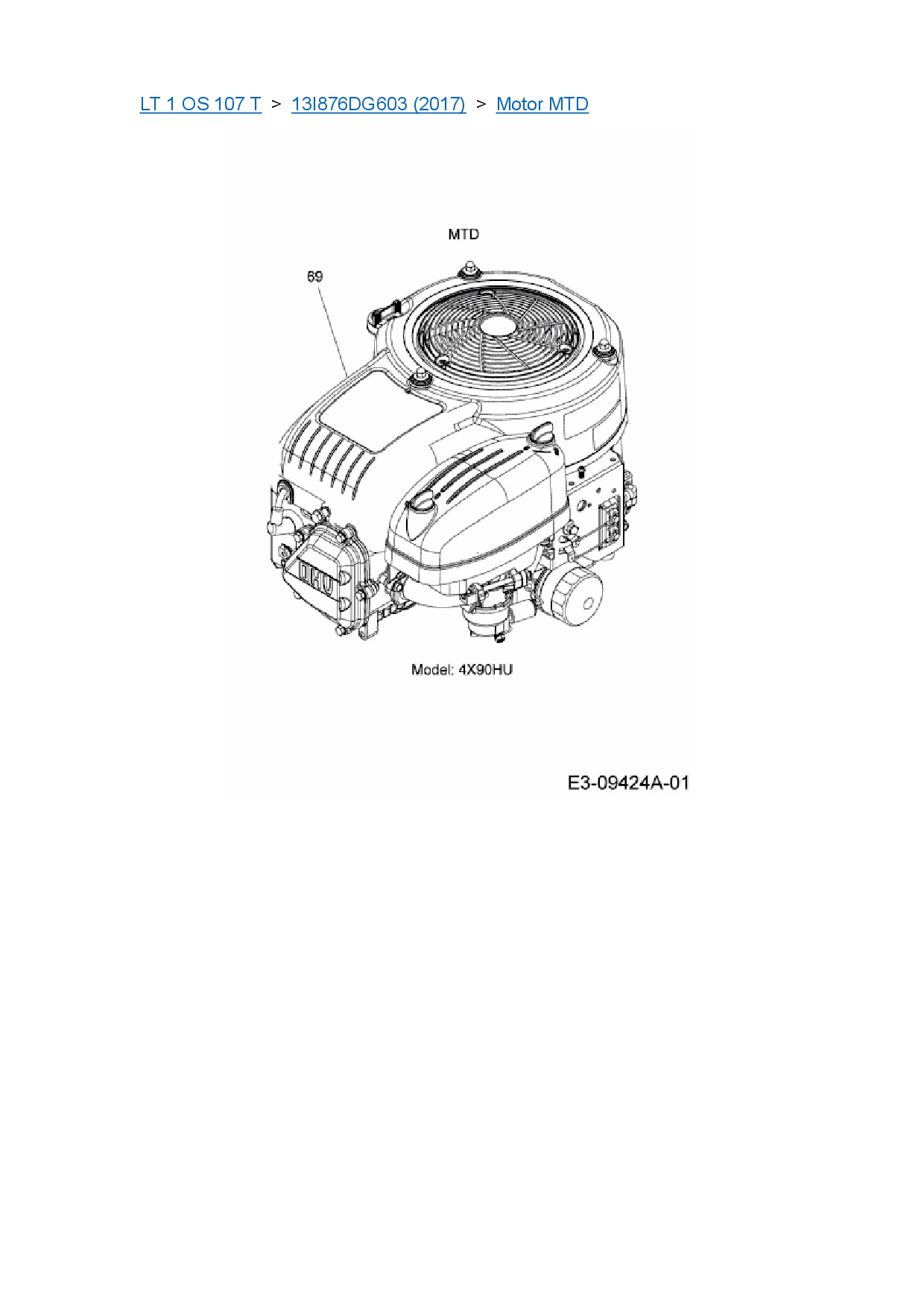 Ersatzteile für Rasentraktor Cub Cadet LT 1 OS 107 T aus der Zeichnung Motor MTD:
