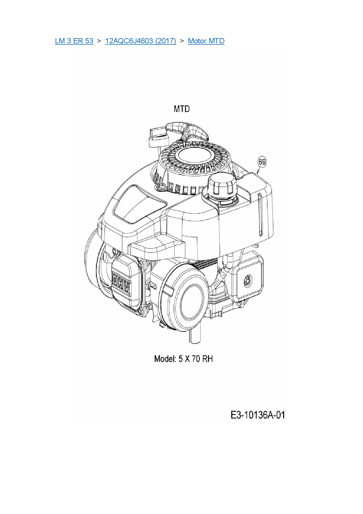 Ersatzteile für Motormäher mit Antrieb Cub Cadet LM 3 ER 53 aus der Zeichnung Motor MTD: