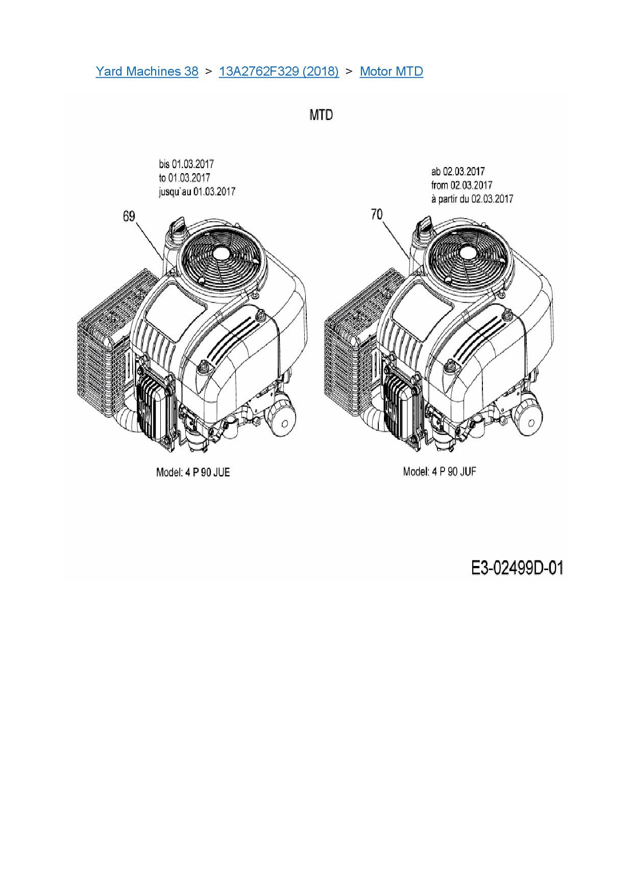 Ersatzteile für Rasentraktor MTD Yard Machines 38 aus der Zeichnung Motor MTD: