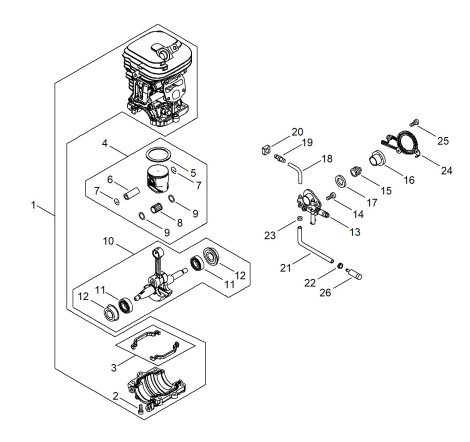 Zeichnung von ECHO Motorsägen CS-4510ES CS-4510ES ab S.-Nr.: 38000001 Motor, Ölpumpe: