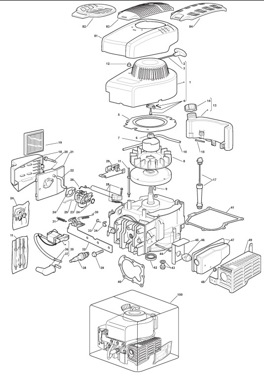 Hier finden Sie alle Ersatzteile von Mountfield Benzinrasenmäher ab 2008 MULTICLIP 501 PD (Geräte Nr.: 291502043/UM8) aus der Zeichnung Motor - ST. M150(1):