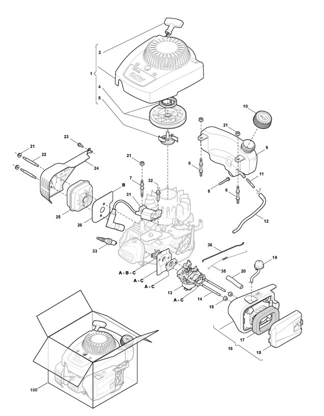 Hier finden Sie alle Ersatzteile von Castelgarden Benzinrasenmäher ab 2012 DI 474 - G (ID 292470043/12) aus der Zeichnung Motor - ST. RV100 (1):