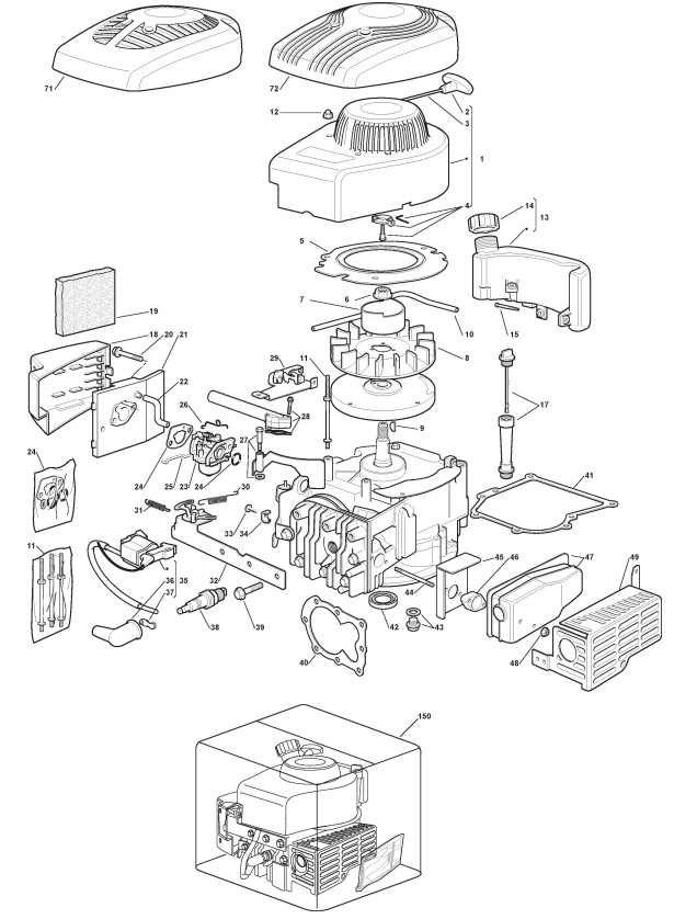 Hier finden Sie alle Ersatzteile von Castelgarden Benzinrasenmäher ab 2008 NG 464 - G (ID 293516143/Y) aus der Zeichnung Motor - ST. SV150 (1):