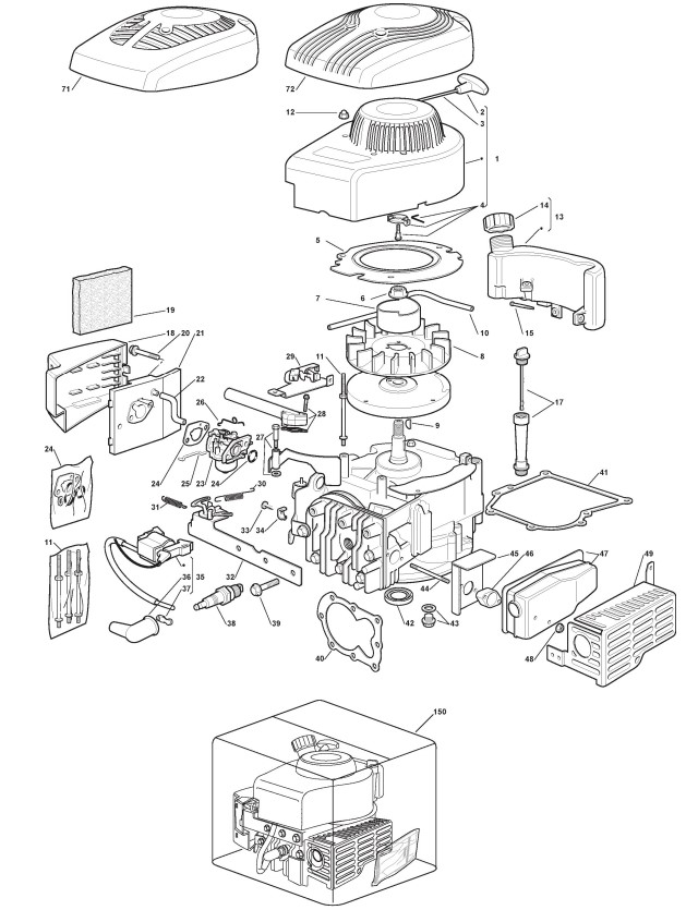 Hier finden Sie alle Ersatzteile von Castelgarden Benzinrasenmäher ab 2008 XSE 48 GS (ID 299274643/SP8) aus der Zeichnung Motor - ST. SV150 (2):