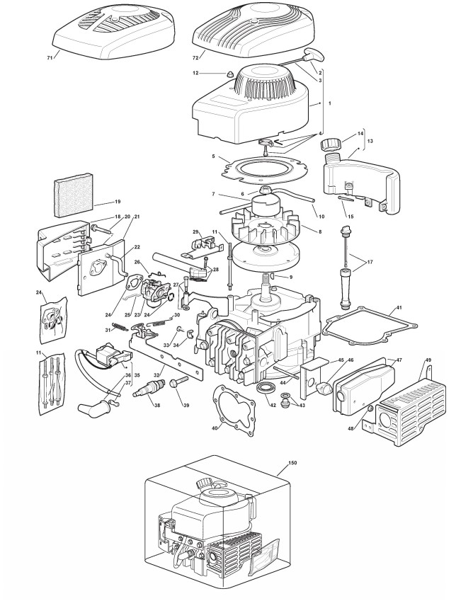 Hier finden Sie alle Ersatzteile von Castelgarden Benzinrasenmäher ab 2008 NG 464 TR (ID 293616143/MB) aus der Zeichnung Motor - ST. SV150 (2):