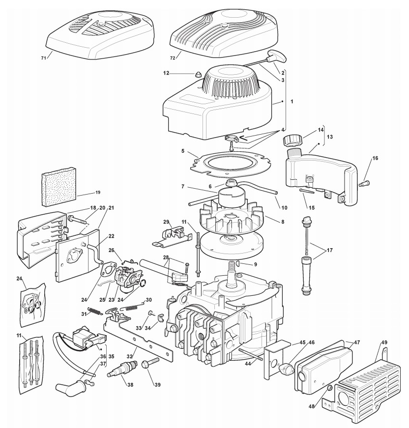 Hier finden Sie alle Ersatzteile von Castelgarden Benzinrasenmäher ab 2009 R 484 - G (ID 298436043/07) aus der Zeichnung Motor - ST. SV150: