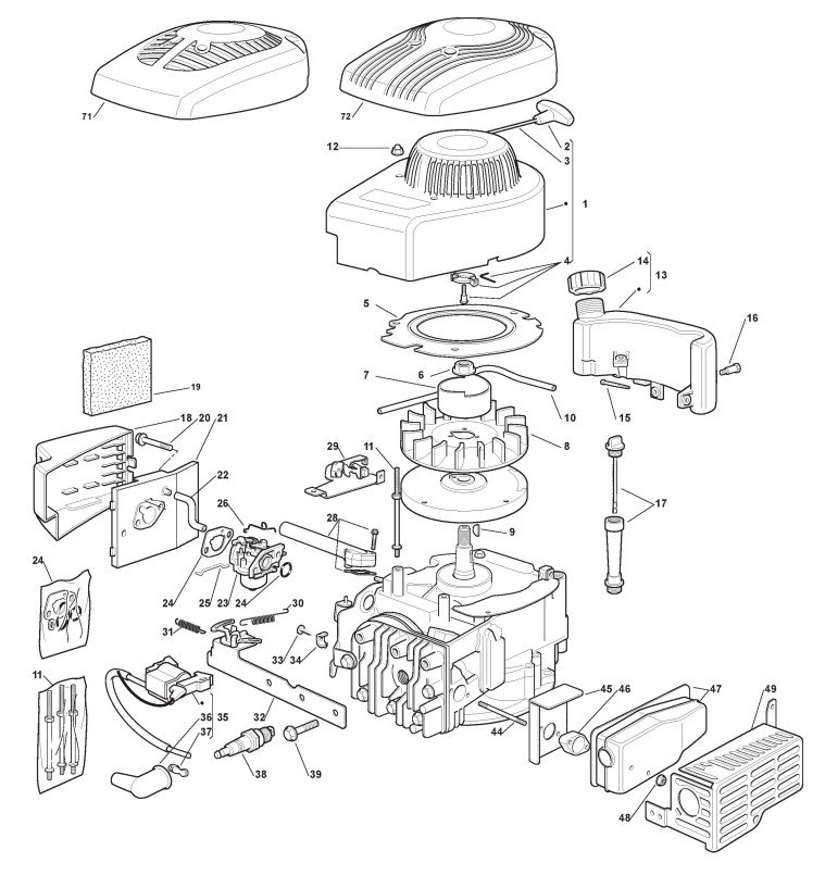 Hier finden Sie alle Ersatzteile von Castelgarden Benzinrasenmäher ab 2011 CS 484 S - G (ID 295492043/11) aus der Zeichnung Motor - ST. SV150: