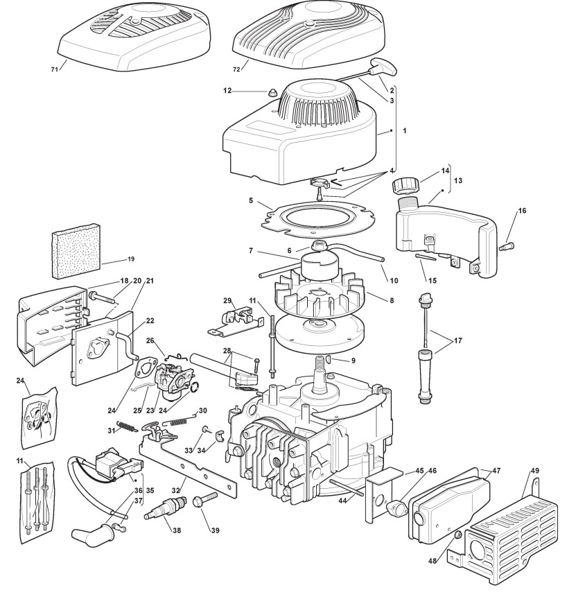 Hier finden Sie alle Ersatzteile von Castelgarden Benzinrasenmäher ab 2009 XSE 50 G (ID 298436043/GR) aus der Zeichnung Motor - ST. SV150: