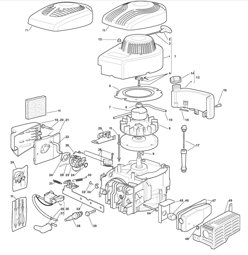 Hier finden Sie alle Ersatzteile von Castelgarden Benzinrasenmäher ab 2010 XSE 50 G (ID 298438043/10) aus der Zeichnung Motor - ST. SV150: