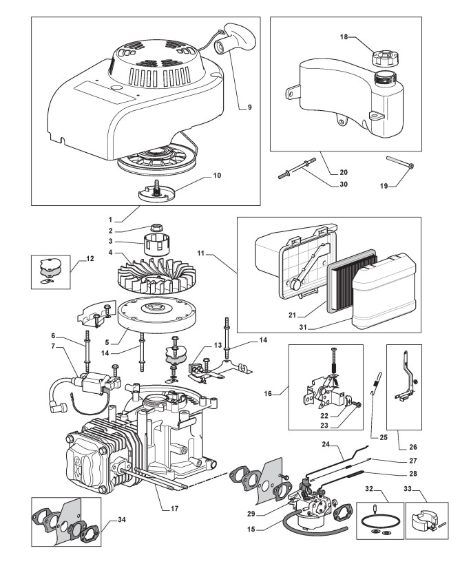 Hier finden Sie alle Ersatzteile von Castelgarden Benzinrasenmäher ab 2010 248 AL SP (ID 295506041/FER) aus der Zeichnung Motor - ST. WBE0701 (1):