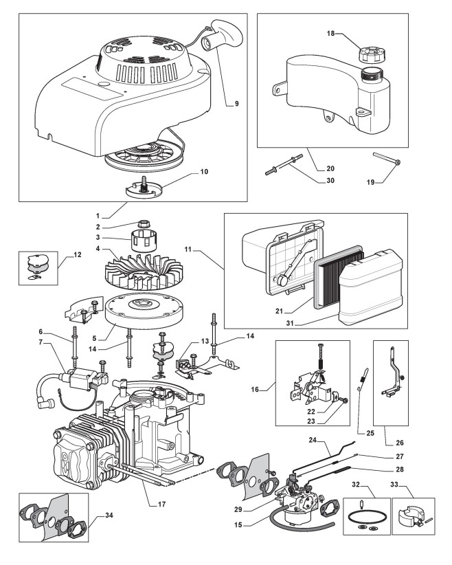 Hier finden Sie alle Ersatzteile von Castelgarden Benzinrasenmäher ab 2009 XSW 50 MGS (ID 291487043/SP8) aus der Zeichnung Motor - ST. WBE0701 (1):