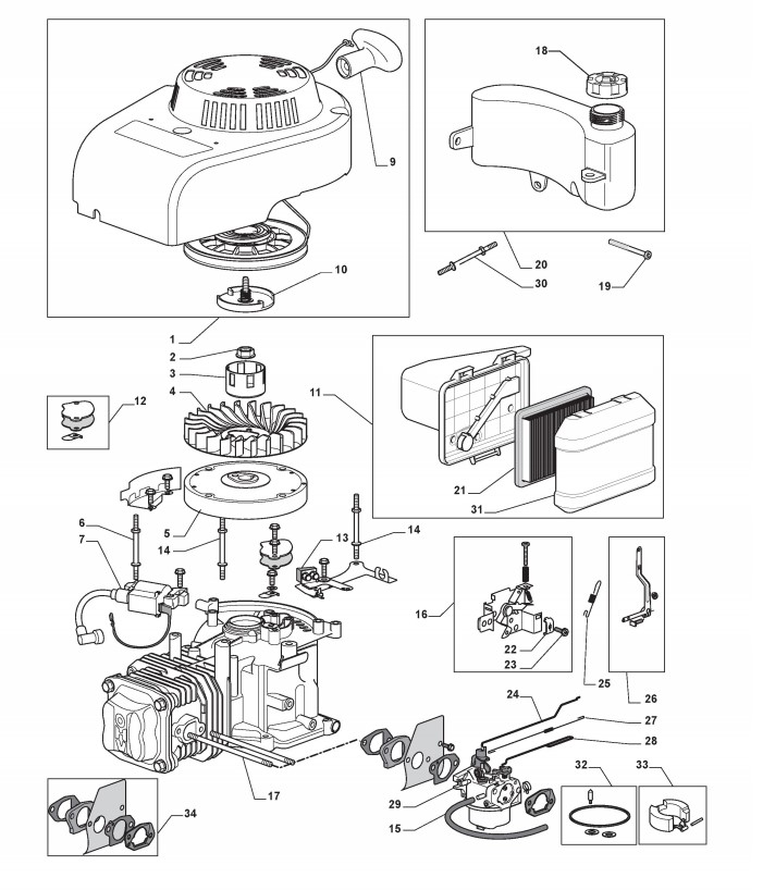 Hier finden Sie alle Ersatzteile von Castelgarden Benzinrasenmäher ab 2010 R 534 SP (ID 298532043/DIA) aus der Zeichnung Motor - ST. WBE0701 (1):