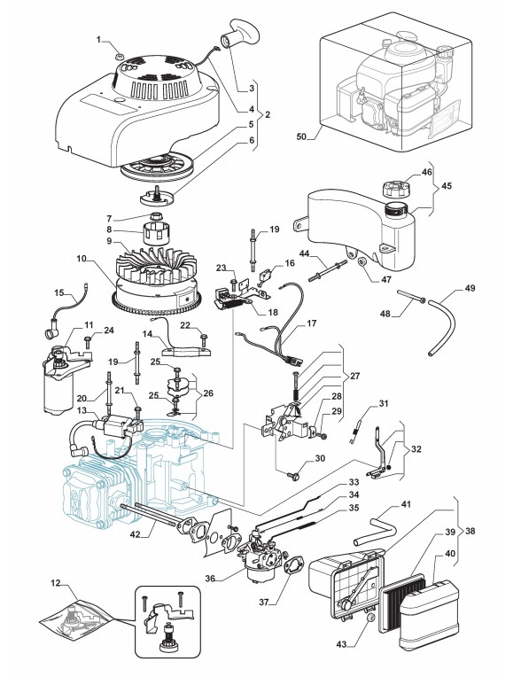 Hier finden Sie alle Ersatzteile von Stiga Benzin-Rasenmäher ab 2014 Multiclip Plus 50 SE (Geräte Nr 291502648/S14) aus dem Zeichnungsblatt Motor - ST. WBE0701ES (1):