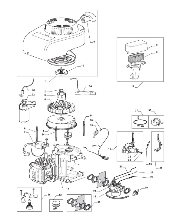 Zeichnungen von Stiga Motoren M65 mit Geräte Nr. 118550433/0_080001M65 ab Baujahr 2009