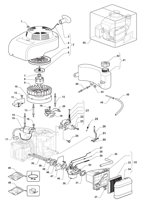Hier finden Sie alle Ersatzteile von Castelgarden Benzinrasenmäher ab 2019 XS 55 GS (ID 294556043/C18) aus der Zeichnung Motor - Vergaser, Tank (1):