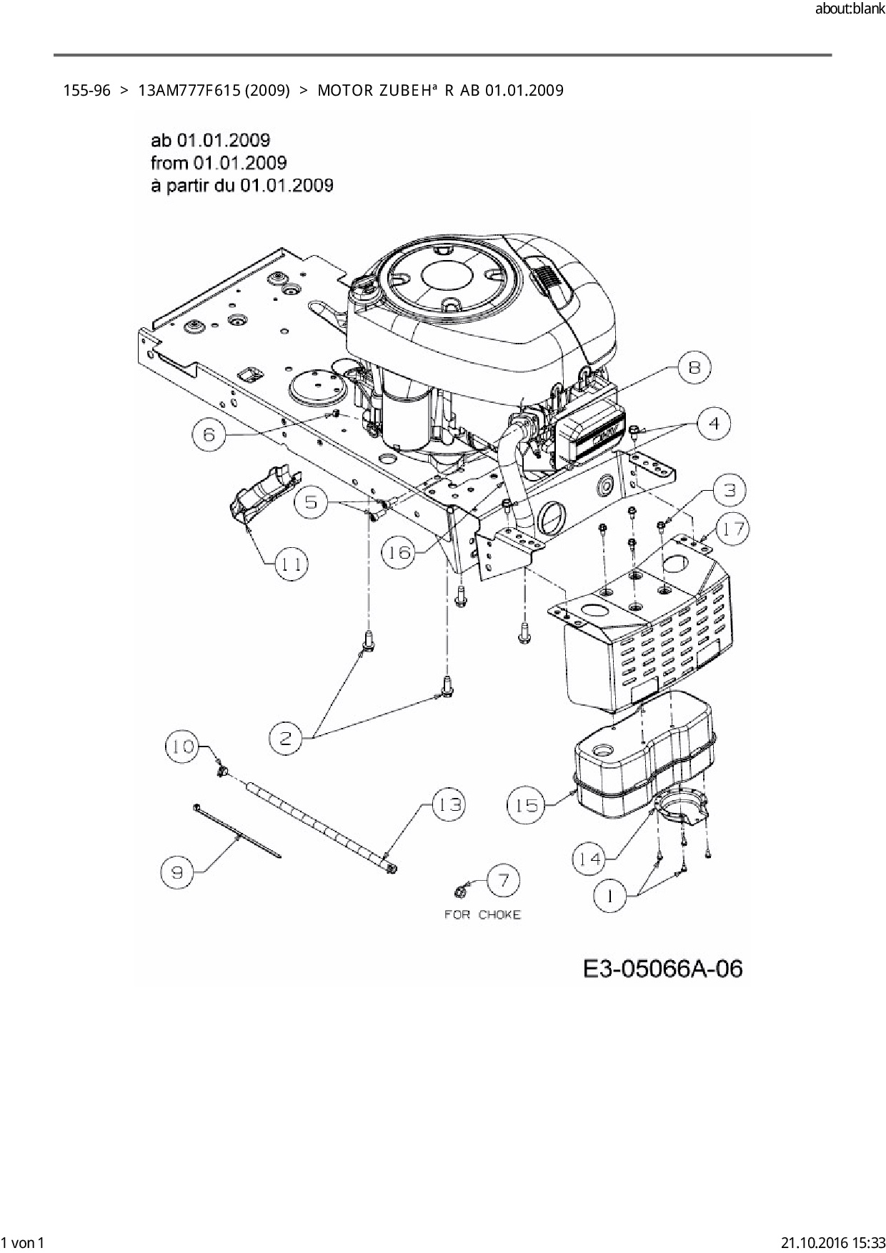 Ersatzteile für Rasentraktor Black Edition 155-96 aus der Zeichnung Motor Zubehör ab 01.01.2009: