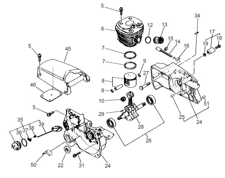Zeichnung von ECHO Motorsägen CS-4510 Motor, -abdeckung, Öltank: