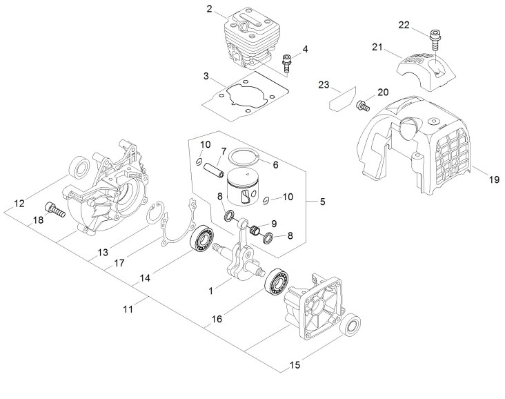 Zeichnung von ECHO Motorsensen Kreiselscheren EKS-PRS-230U Motor, -abdeckung: