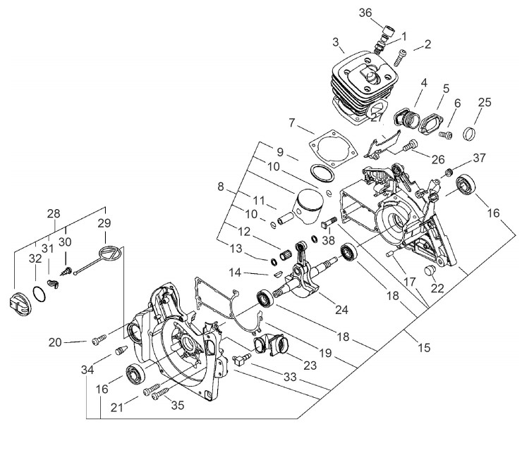 Zeichnung von ECHO Motorsägen CS-610 CS-610 bis S.-Nr.: 36002250 Motor, -gehäuse, Öltank: