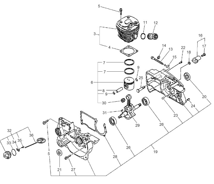 Zeichnung von ECHO Motorsägen CS-5000 Motor, -gehäuse, Öltank: