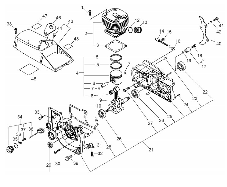 Zeichnung von ECHO Motorsägen CS-8002 CS-8002 ab S.-Nr.: 36001406 Motor, -gehäuse, -abdeckung, Öltank: