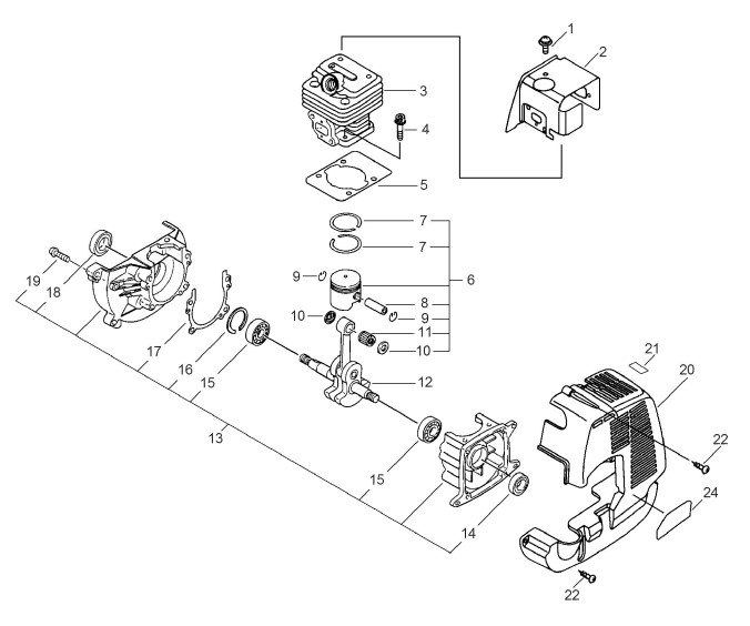 Zeichnung von ECHO Laubbläser, tragbar PB-260LSI Motor, -gehäuse, -abdeckung: