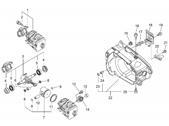 Zeichnung von ECHO Motorsägen CS-270WES CS-270WES ab S.-Nr: 36006131 Motor, -gehäuse: