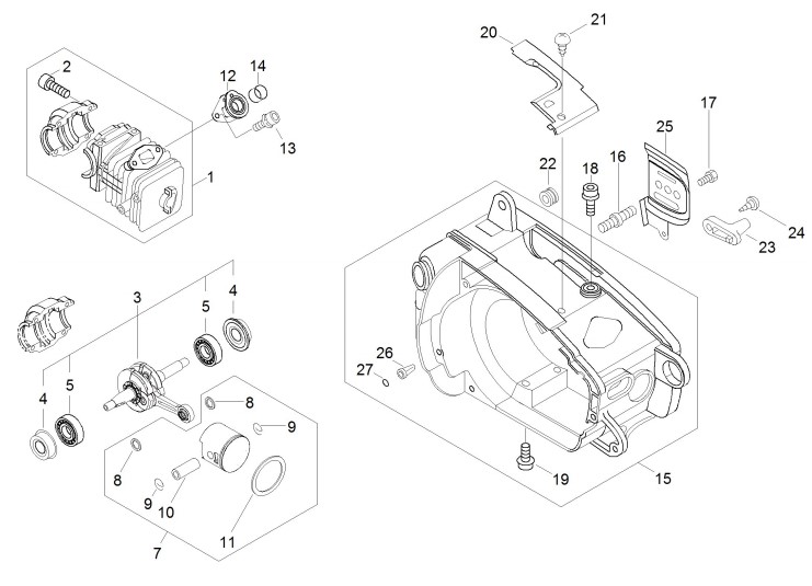 Zeichnung von ECHO Motorsägen CS-280TES CS-280TES ab S.-Nr.: 37001861 Motor, -gehäuse:
