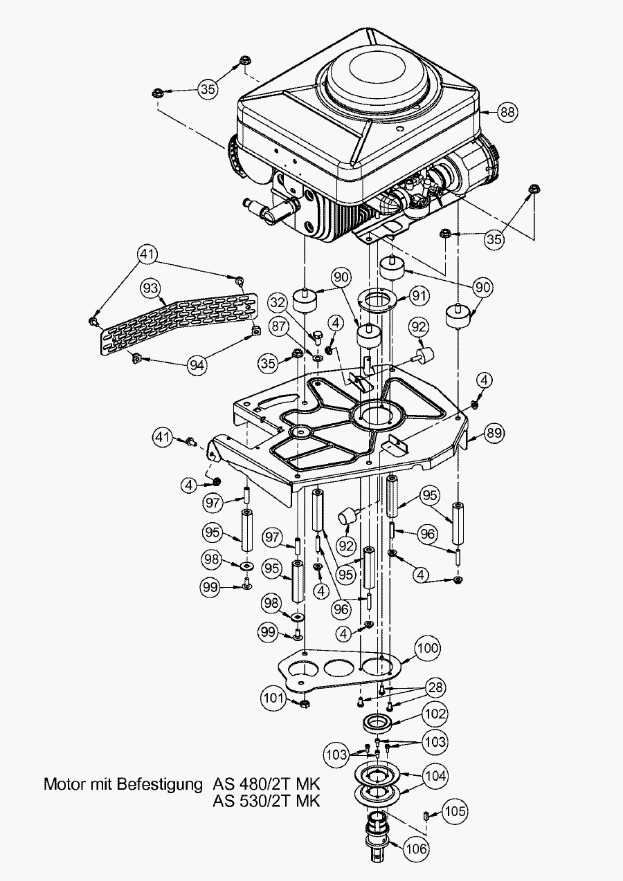 Hier finden Sie alle Ersatzteile von AS-Motor Profi-Rasenmäher AS 480/2T MK ab FNr. 019007202001 aus dem Zeichnungsblatt Motor mit Befestigung: