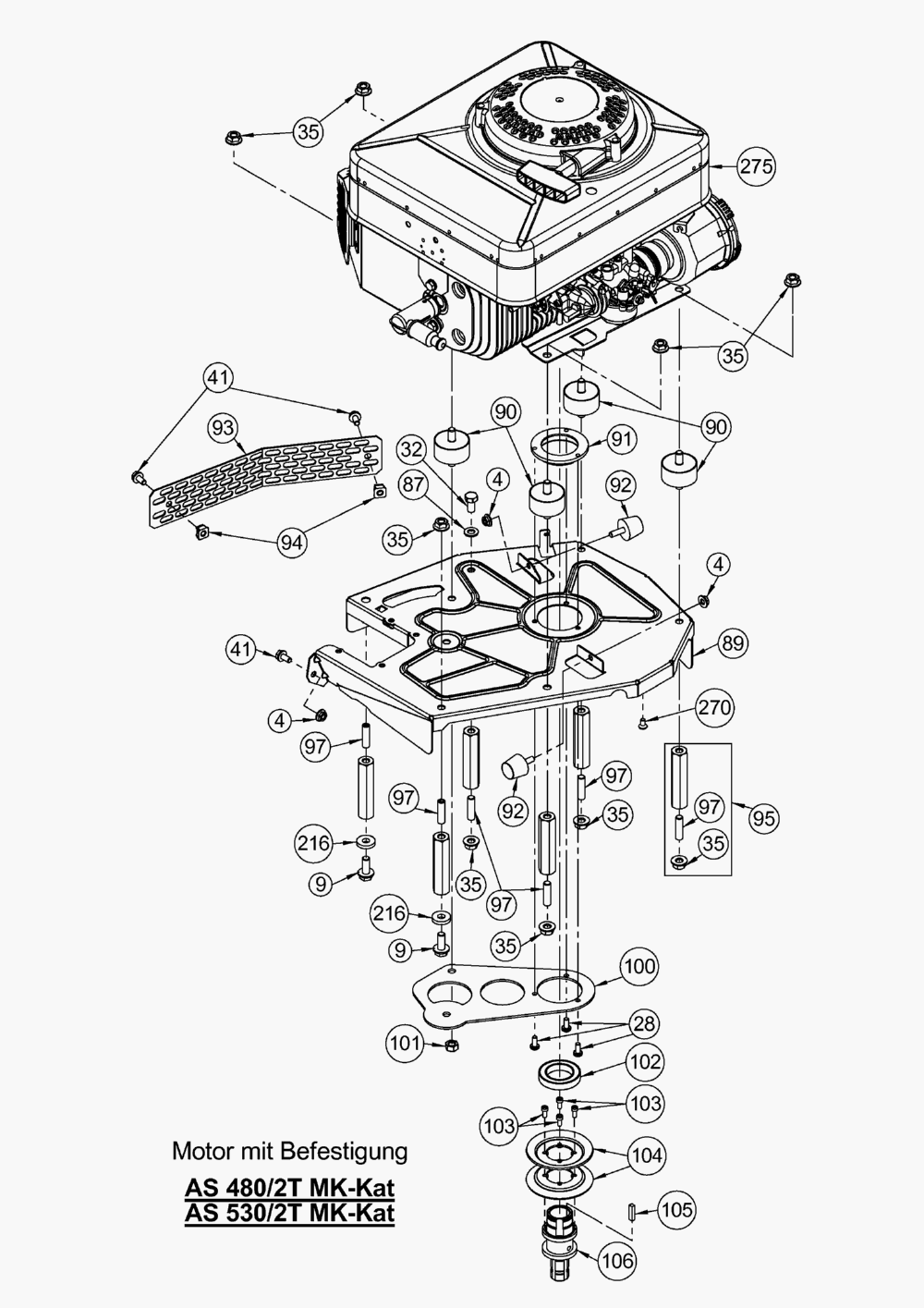 Hier finden Sie alle Ersatzteile von AS-Motor Profi-Rasenmäher AS 480/2T MK-Kat ab FNr. 020408050001 aus dem Zeichnungsblatt Motor mit Befestigung: