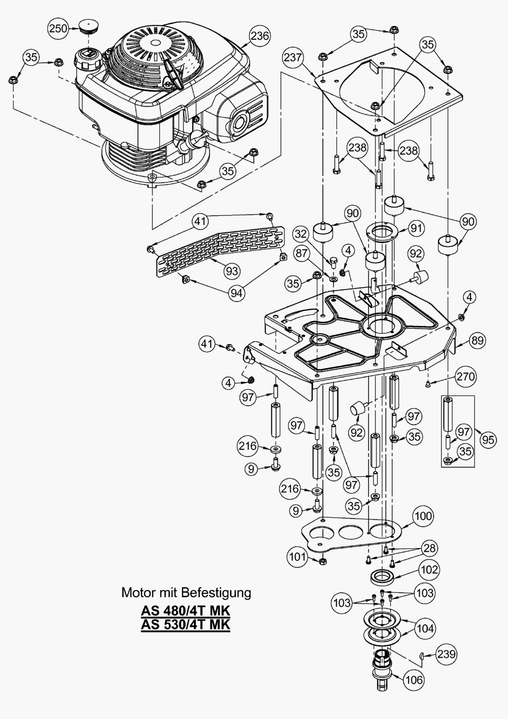 Hier finden Sie alle Ersatzteile von AS-Motor Profi-Rasenmäher AS 530/4T MK ab FNr. 019608050001 aus dem Zeichnungsblatt Motor mit Befestigung: