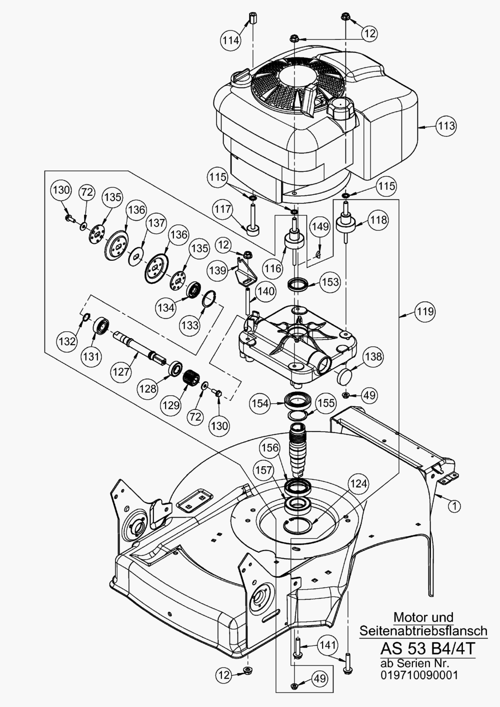 Hier finden Sie alle Ersatzteile von AS-Motor Profi-Rasenmäher AS 53 4T und AS 53 B4/4T ab FNr. 019710090001 aus dem Zeichnungsblatt Motor mit Seitenabtrieb: