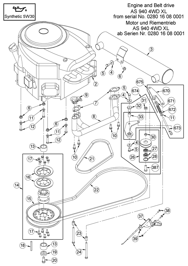 Hier finden Sie alle Ersatzteile von AS-Motor Aufsitzmäher AS 940 Sherpa 4WD XL ab FNr. 028016080001 aus dem Zeichnungsblatt Motor und Riementrieb: