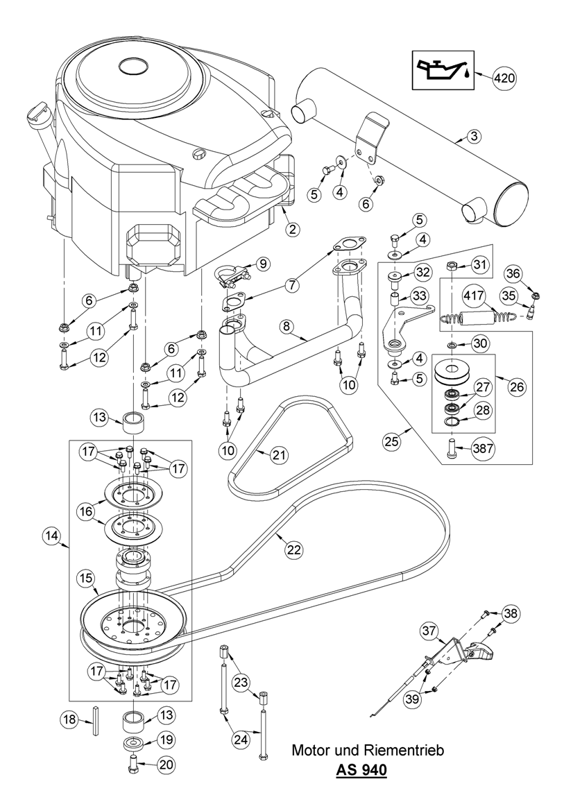 Hier finden Sie alle Ersatzteile von AS-Motor Aufsitzmäher AS 940 Sherpa 4WD B&S ab FNr. 021910080024 aus dem Zeichnungsblatt Motor und Riementrieb: