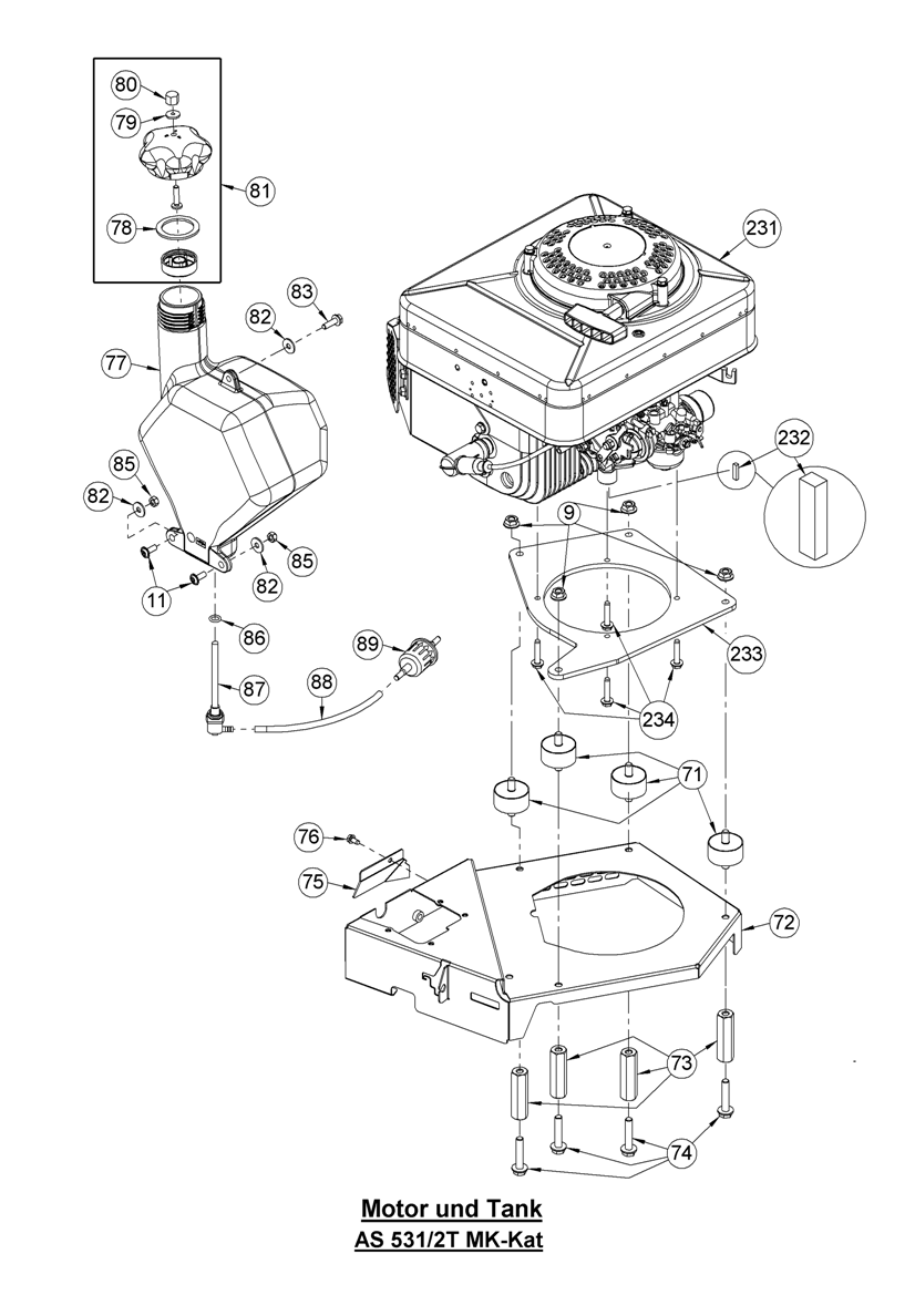 Hier finden Sie alle Ersatzteile von AS-Motor Profi-Rasenmäher AS 531/2T MK-Kat VarioPro ab FNr. 024412100001 aus dem Zeichnungsblatt Motor und Tank: