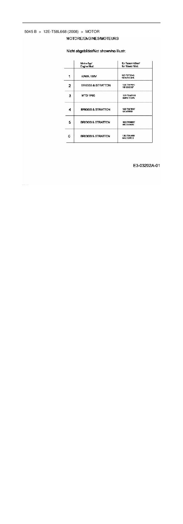 Ersatzteile für Motormäher mit Antrieb Mac Allister 5045 B aus der Zeichnung Motor: