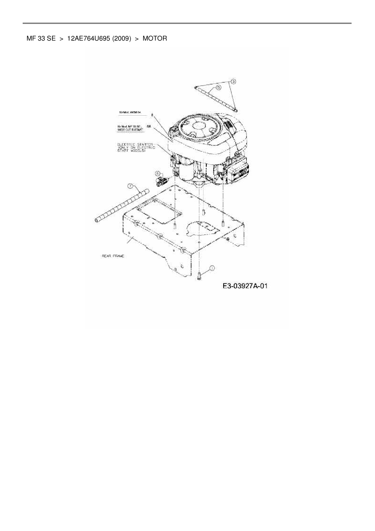 Zeichnung für Massey Ferguson Motormäher mit Antrieb MF 33 SE mit der Geräte-Artikelnr. 12AE764U695 ab Baujahr 2009: