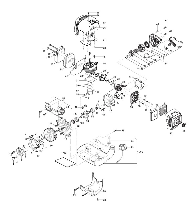 Zeichnungen von Alpina Rasentrimmer/Freischneider B 42 D mit Geräte Nr. 287321000/16 ab Baujahr 2016