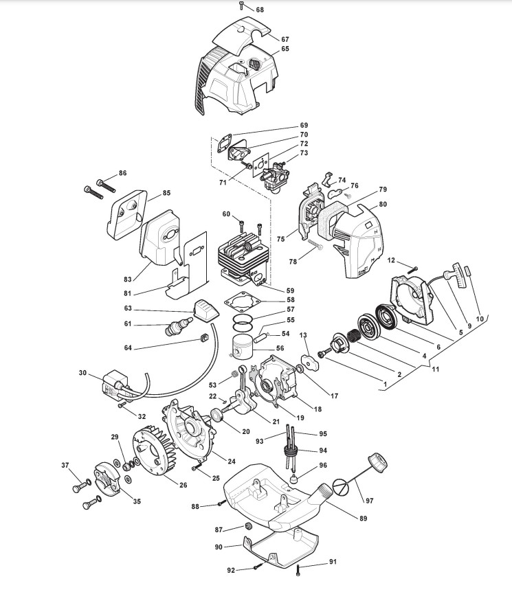Zeichnungen von Alpina Rasentrimmer/Freischneider B 44 D mit Geräte Nr. 280321000/12 ab Baujahr 2012