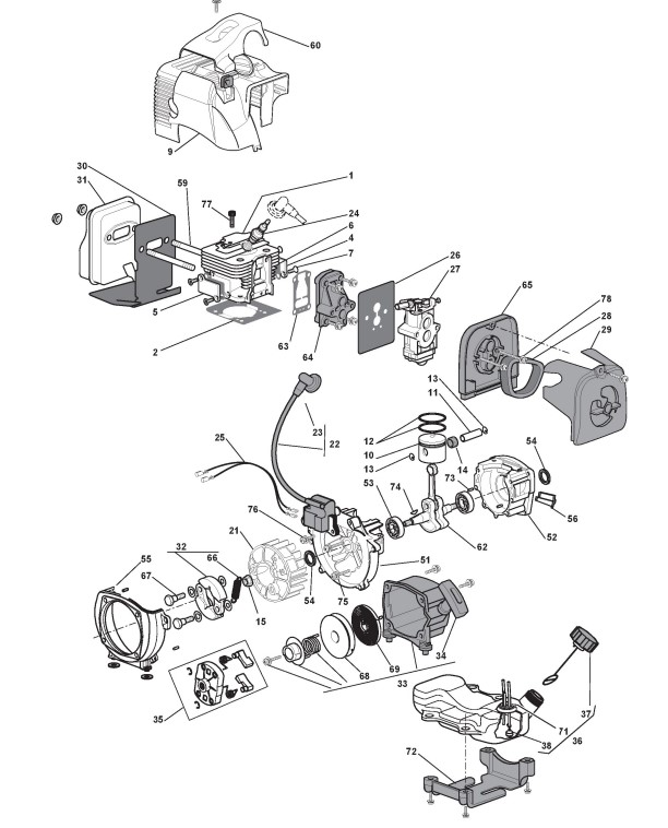 Zeichnungen von Alpina Rasentrimmer/Freischneider BC 35 D mit Geräte Nr. 283821000/ALX ab Baujahr 2010
