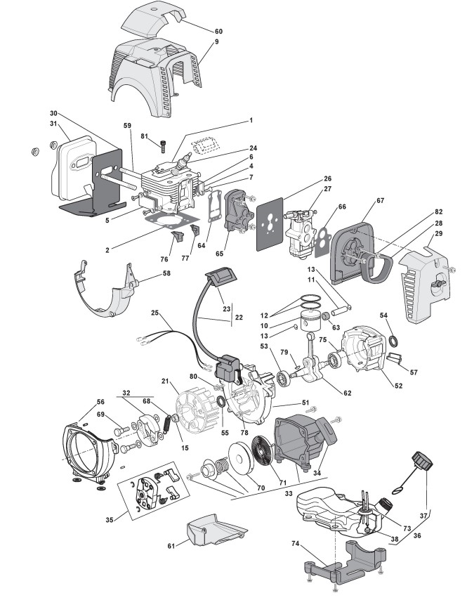 Zeichnungen von Alpina Rasentrimmer/Freischneider BC 43 DS mit Geräte Nr. 281621000/ALX ab Baujahr 2012