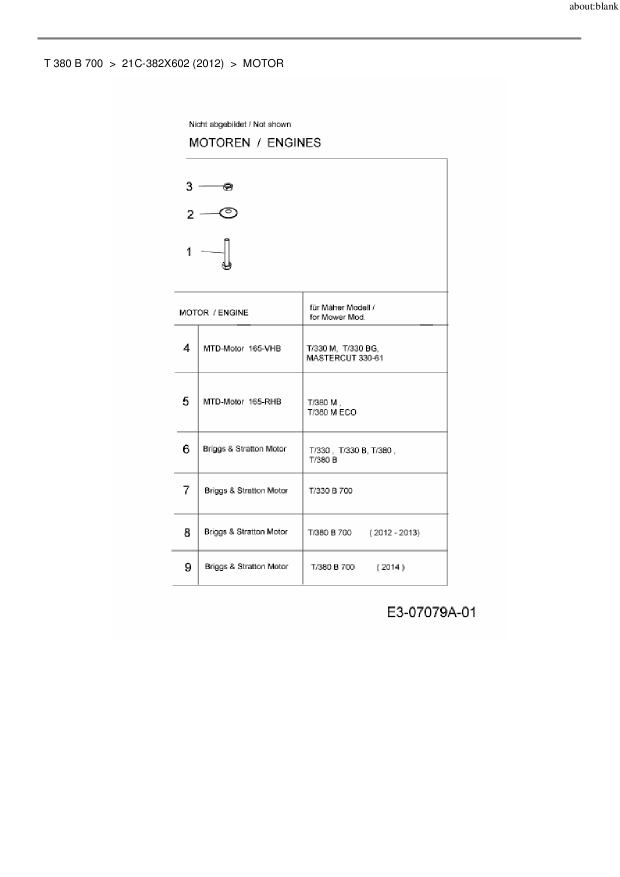Ersatzteile für Motorhacke MTD T 380 B 700 aus der Zeichnung Motor: