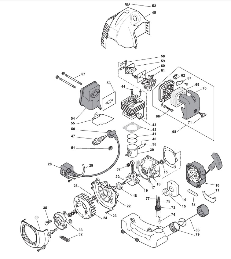 Zeichnungen von Alpina Rasentrimmer/Freischneider BJ 345 mit Geräte Nr. 285420000/10 ab Baujahr 2011