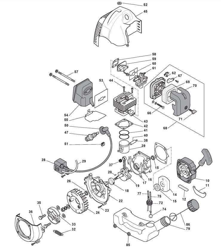 Zeichnungen von Alpina Rasentrimmer/Freischneider BJC 345 F mit Geräte Nr. 285422011/10 ab Baujahr 2012