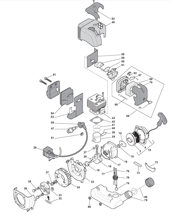 Zeichnungen von Alpina Rasentrimmer/Freischneider CB 26 mit Geräte Nr. 280720001/10 ab Baujahr 2010