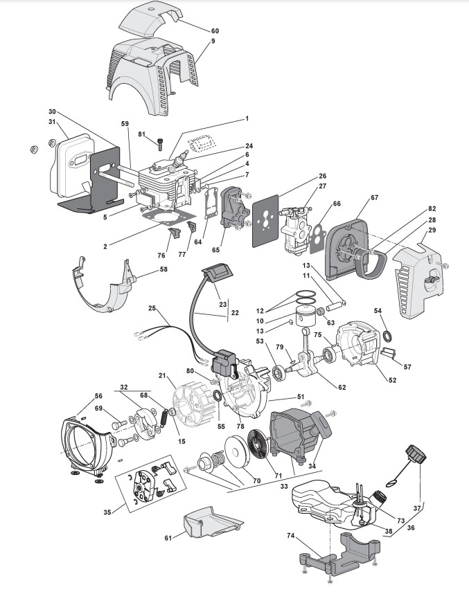 Zeichnungen von Alpina Rasentrimmer/Freischneider CB 43 DS mit Geräte Nr. 281621001/09 ab Baujahr 2010
