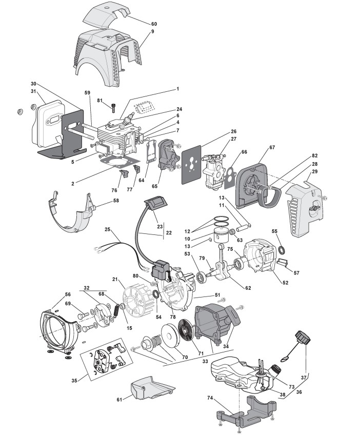 Zeichnungen von Alpina Rasentrimmer/Freischneider CB 51 S mit Geräte Nr. 281720001/09 ab Baujahr 2012